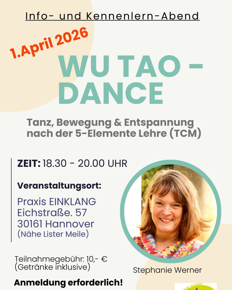 WU TAO-DANCE Kennenlernabend am Mittwoch dem 1.April 2026 in der Zeit von 18.30-20.00 Uhr.