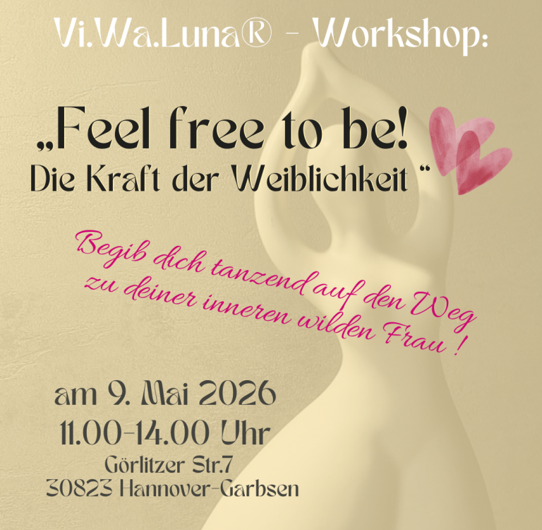 Gönn dir etwas Zeit für dich und tauche ein, in die Welt von Vi.Wa.Luna, wo Vitalität, Wahrnehmung und Weiblichkeit im Mittelpunkt stehen! Begib dich tanzend auf den Weg zu deiner inneren wilden Frau.